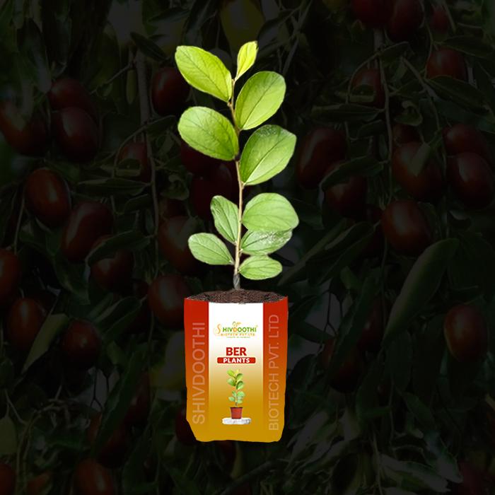 The Ber plant is a small to medium-sized tree that can grow up to 10-12 meters tall. It has a dense crown with many branches and a rough, grayish-brown bark. The leaves are oval-shaped, glossy green, and have a smooth surface. The tree produces small yellowish-green flowers that are followed by the fruit.